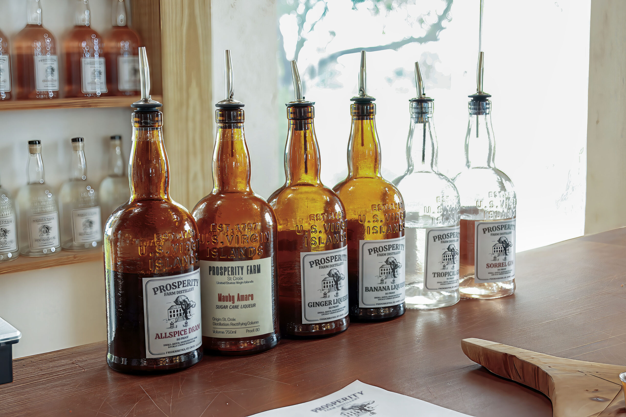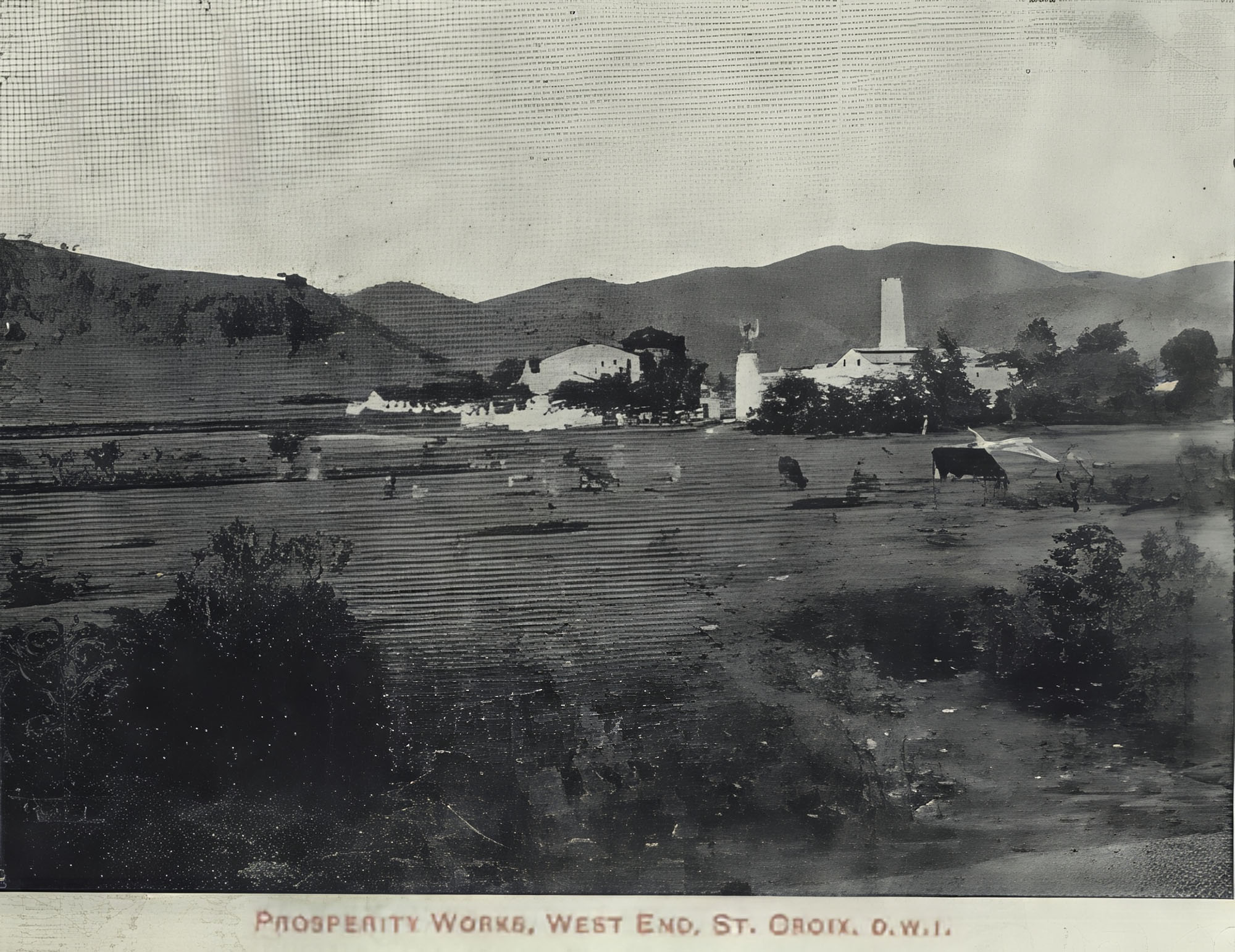 Estate Prosperity in West End Quarter, plot 36, was one of the earliest estates on St Croix, showing an animal mill on the Beck map of 1754. The 1778 Oxholm map shows a windmill in the center of the estate. Once a very large estate, the remaining 180 acres now operates as Prosperity Farm Distillery, a working farm to bottle distillery and destination location. Unlike Danish colonial estates where the primary focus was on producing sugar, and rum was a side product, fermented from the molasses, Prosperity Farm grows and harvests sugar cane, crushing the cane and fermenting the cane juice to produce Gins.