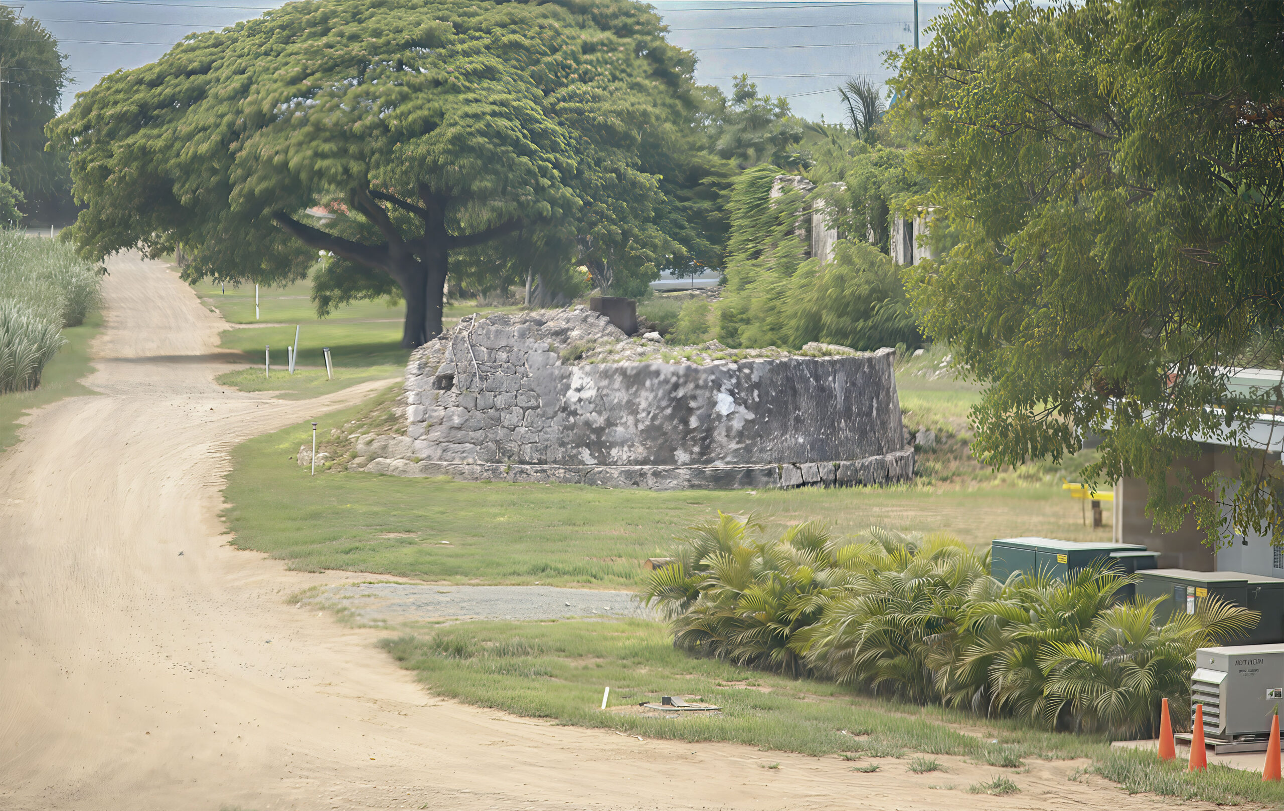 The Prosperity mill, located in what is now a gated community between The Beast and Carambola Resort, is severely degraded, as can be seen in this satellite view from 2006, half or the mill is missing.